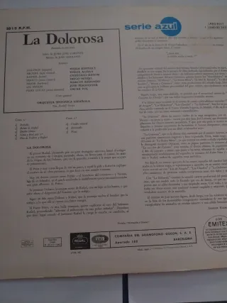 Disco de vinilo de La Dolorosa de José Serrano. - Serie Azul.