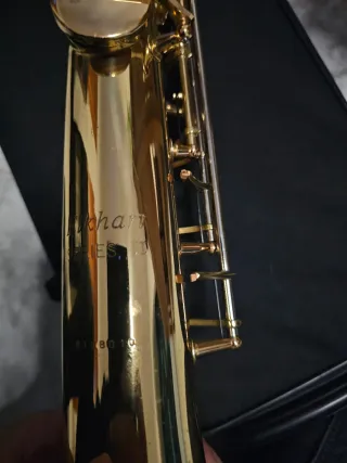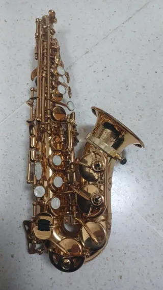 Saxofón soprano de color dorado, ideal para músicos. - Acabado brillante. - Incluye estuche rígido.