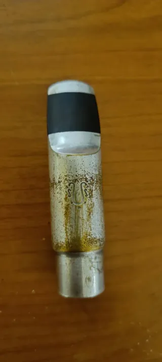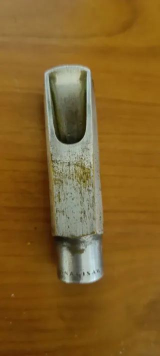 Boquilla para saxo soprano Yanagisawa 7 metálica, con desgaste en el plateado, pero con excelente sonido. Viene con abrazadera y boquillero originales.