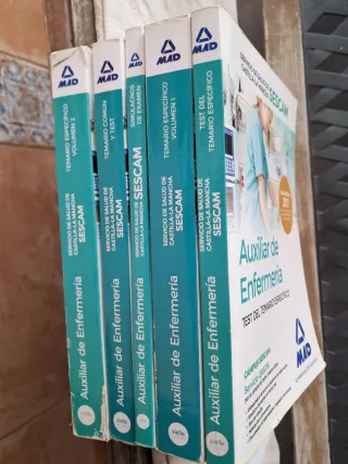 Colección de cinco libros de Auxiliar de Enfermería del SESCAM. Convocatória 2017 Los libros.se encuentran subrayados en los puntos claves con lápiz grafito que se puede borrar o te pueden ayudar a simplificar el trabajo, ahorrando tiempo y esfuerzo, para centrarte en tu meta. Si tu sueño es aprobar la próxima convocatoria, esta es tu colección. Están en perfecto estado, usados y mimados . Sin roturas.