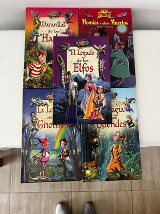 Se muestra una colección de 5 libros infantiles de la editorial Libsa, centrada en temática de criaturas fantásticas y misterio. Libros destacados: Se incluyen títulos como Momias y otros muertos (muy vivos) de María Mañeru. Temáticas: La colección aborda temas como hadas, duendes, elfos, gnomos y monstruos. Público objetivo: Son libros dirigidos a niños y jóvenes interesados en historias de terror ligero o fantasía. 4€ cada uno