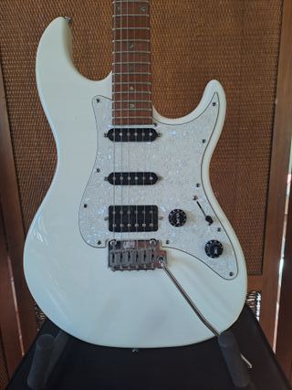 Una guitarra absolutamente hermosa. No es necesario cambiar ninguna pieza, ya que muchos componentes son de mayor calidad del fabricante. (Ver la última foto para más detalles). Motivo de la venta: Necesidad de reducir el inventario personal (según la pareja). Se incluye un golpeador negro. - Cuerpo de aliso con tapa de arce flameado. - Mástil de arce. - Diapasón de palisandro. - Pastillas HSH (Humbucker-Single-Humbucker). - Puente trémolo. - Clavijero Grover.