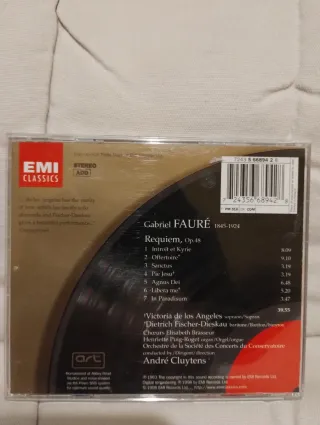 Grabación clásica de Requiem de Fauré. - Great Recordings of the Century series. - Interpretado por Victoria de los Angeles y Dietrich Fischer-Dieskau. - Orquesta de la Société des Concerts du Conservatoire. - Bajo la dirección de André Cluytens. - Sello discográfico EMI Classics. En buen estado Sé puede hacer ofertas