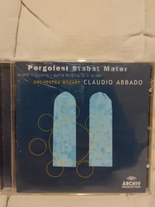 CD de música clásica con Stabat Mater de Pergolesi. - Incluye Violin Concerto y Salve Regina in C minor. - Interpretado por la Orchestra Mozart. - Dirigido por Claudio Abbado. En buen estado. Sé puede hacer ofertas