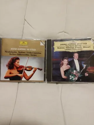 Dos CDs de música clásica interpretados por Anne-Sophie Mutter. - Anne-Sophie Mutter: Mendelssohn · Brahms: Violin Concertos con la Berliner Philharmoniker y Karajan. - Anne-Sophie Mutter: The Berlin Recital con Brahms, Debussy, Franck, Mozart y Lambert Orkis al piano. En buen estado. Sé puede hacer ofertas