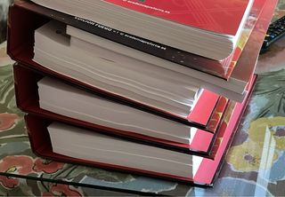 Temario ingreso a guardia civil. Son 3 carpetas como la de la foto que incluyen todos los temas. Está subrayado hasta la mitad del temario más o menos y la otra mitad está intacta. Regalo apuntes 🫡💚
