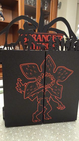 Expositor temático inspirado en Stranger Things, perfecto para mostrar la colección de figuras Kinder Joy de la serie. El diseño está inspirado en el concepto de doble mundo de la serie: • Parte superior: el mundo real de Hawkins con la icónica pared del alfabeto. • Parte inferior: el Mundo del Revés, con un diseño oscuro y la silueta del Mind Flayer. 🔴 Detalles temáticos: Logo de Stranger Things en la parte superior Detalles de Demogorgon Reloj de Vecna en el lateral Panel trasero inspirado en la famosa pared del alfabeto de la temporada 1 🧩 Diseñado para exponer la colección Kinder Joy Stranger Things de forma organizada