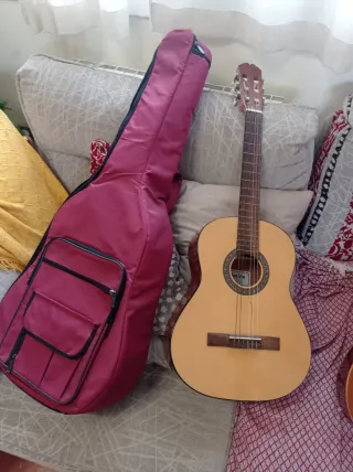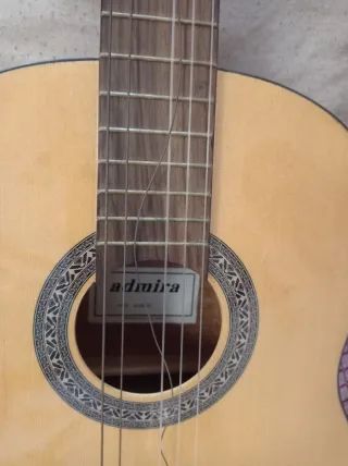 Guitarra clásica Admira Alba de tamaño 3/4. Ideal para iniciarse en el mundo de la música. Tiene muy poco uso. - Tapa de abeto. - Aros y fondo de sapelly. - Mástil de caoba. - Diapasón de palisandro. Le falta una cuerda.