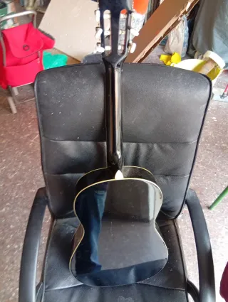 Guitarra clásica de tamaño junior, ideal para iniciarse en la música. Su acabado negro le da un aspecto elegante. - Cuerpo de madera. - Diapasón con trastes. - Cuerdas de nylon. Lo que pido y valdrá la funda ...