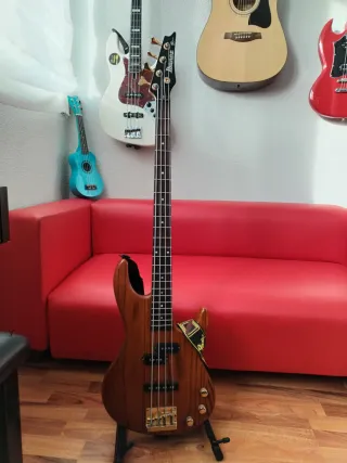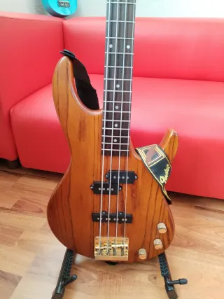Ibanez TR Series (modelo TRB200) fabricado en la famosa planta de Samick (Corea) en 1995. En buen estado. Acción ligeramente elevada en trastes finales debido a la curvatura natural de la madera. Bajo muy versátil, tiene un sonido con mucho carácter. Características: - Cuerpo: Fresno sólido con veta vista muy bonita. - Mástil/Diapasón: Arce con diapasón de Palosanto. - Herrajes: Puentes y clavijas originales en acabado dorado (característica tope de gama TR series). - Electrónica: Configuración P/J muy versátil. - Mantenimiento: Recién revisado por luthier y con cuerdas de acero nuevas a estrenar. - Extra: Funda. 190€ negociables