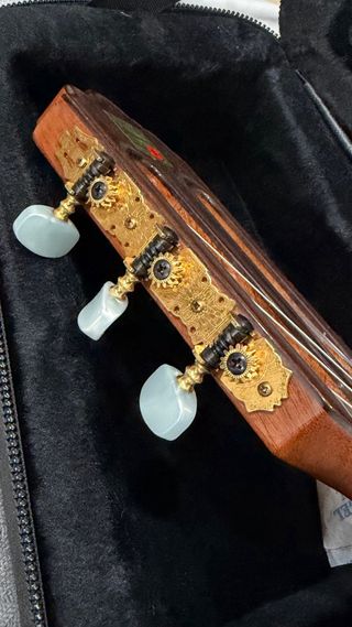 Guitarra clásica Alhambra 4P en perfecto estado. Ideal para estudiantes y músicos. Guitarra en perfectas condiciones, muy cómoda de tocar y baja de pulsación. Incluye la funda que sale en la foto, muy acolchada y con belcro de seguridad para que el mástil no se mueva. También incluye un cordaje nuevo, púas y guardapúas. - Tapa de cedro macizo. - Aros y fondo de palosanto. - Mástil de caoba. - Diapasón de ébano. - Incluye funda semi rigida