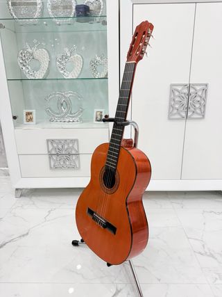 Guitarra clásica de madera, ideal para iniciarse en la música. - Cuerpo de madera. - Mástil de madera. - Cuerdas de nylon.