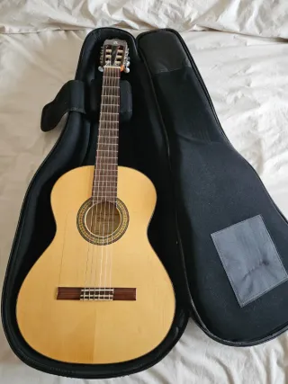 Buscas un instrumento con carácter? Esta guitarra clásica destaca por su sonido cálido, profundo y una resonancia natural que solo las maderas que han madurado bien pueden ofrecer. Ideal tanto para principiantes que buscan comodidad como para quienes quieren un segundo instrumento fiable. ✅ Lo mejor: Tacto suave: Acción de cuerdas baja para tocar horas sin fatiga. Mástil perfecto: Recto y ergonómico, facilita cada acorde. Estética cuidada: Acabado brillante que resalta su veta natural. Una guitarra que "pide ser tocada". Sin grietas ni golpes estructurales. ¡Ven a probarla y deja que su sonido te convenza! 🎶