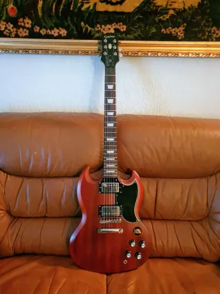 GUITARRA ELECTRICA EPIPHONE VINTAGE SG G400 WORN BROWN, CALIBRADA Y CON CUERDAS NUEVAS!!! -Cuerpo: Caoba -Mástil: Caoba -Escala: 24.75 -Diapasón: Palisandro -Radio: 12 -Pastillas: Alnico Classic Plus Humbucker -Golpeador: Negro -Herrajes: Níquel -Controles: Volumen x2, Tono x2 -Clavijas: Grover Relación 14:1 -Puente: Bloqueo Tune-O-Matic/Stopbar (squier, Fender, stratocaster, telecaster, hagstrom, ltd, esp, ibanez, cort, yamaha, washburn, harley benton, sire, 335, semihollow, custom, standard, Japón, méxico, usa, emg, solar, tokai, grestch, samick, marshall, laney, boss, line 6, framus, hb, les paul, lp, strat, tele)