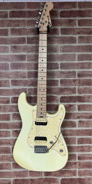Guitarra eléctrica Charvel de color crema. - Cuerpo de guitarra eléctrica. - Mástil de madera clara. - Pastillas dobles. cuerpo Charvel del 87, con un mástil de Charvel también del 2017, pastillas custom bobinadas a mano, selector superswitch y pote push-push para combinaciones en paralelo, puente de acero inoxidable con bloque de latón y palaca a presión made in Japan, clavijero bloqueo y cejuela tusq Tambien cambio por Ibanez RG 550 Con diapason de arce u otra guitarra de 24 trastes de similar calidad