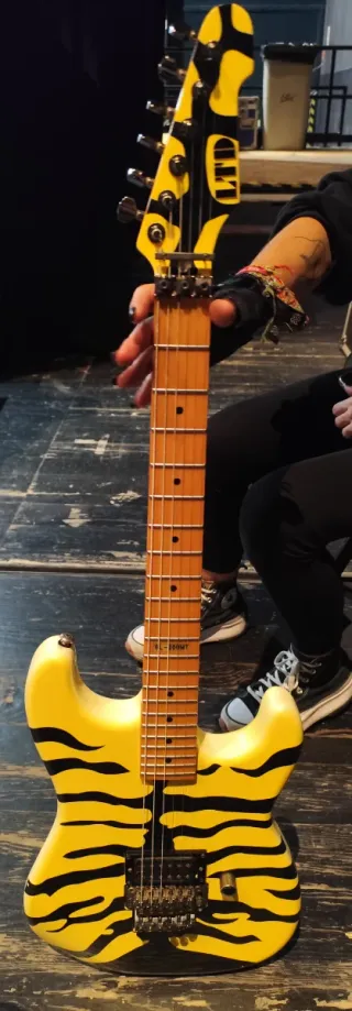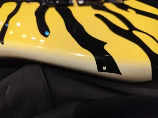 Guitarra eléctrica LTD George Lynch con un llamativo diseño. - Acabado con patrón de tigre amarillo y negro. - Mástil de arce. - Logo de LTD en la pala. Precio no negociable. Entrega en mano a ser posible.