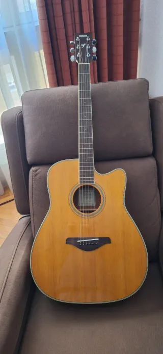 Guitarra electroacústica Yamaha FGC-TA TransAcoustic. Completamente nueva, adquirida en abril 2025 (tengo la factura). Se entrega con su funda acolchada mullida. Tiene un botón que hace que suene como si estuviera conectada a un ampli, pero sin estarlo, con unos efectos increíbles y chulísimos de chorus y dos tipos de reverb. Salida de línea para conexión a amplificador o sistema de grabación. Cejilla: Urea. Puente: Palosanto Cuerpo con cutaway. Tapa: Abeto macizo (solid spruce) para una resonancia y proyección excepcionales.Aros y fondo: Caoba, aportando calidez y profundidad al sonido. Mástil: Nato con diapasón de palosanto.
