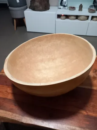 Calabaza natural utilizada como instrumento de percusión. Una calabaza de 45 cm de diametro diàmetro y otra de 27cm Recipiente 55l para tocar-lo - Material: Calabaza seca. - Acabado natural.