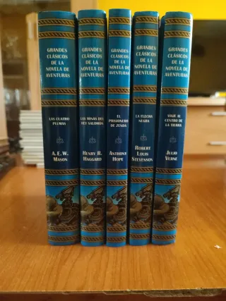 Grandes clásicos de la novela de aventuras, colección de 5 títulos: 1. Viaje al centro de la tierra (de julio Verne) 2. La flecha negra (de Roberto Louis Steve son) 3. El prisionero de Zenda (de Anthony Hope) 4. Las minas del rey Salomón (Henry R. Haggarg) 5. Las cuatro plumas (A.E.W. Mnason)