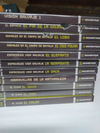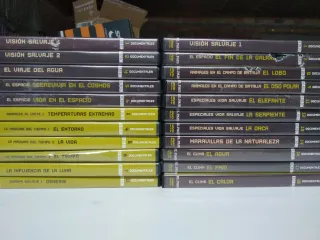 Colección de 22 DVDs de documentales de la BBC. - Títulos variados de naturaleza y ciencia. - Incluye series como Visión Salvaje y La Máquina del Tiempo. - Documentales en español.