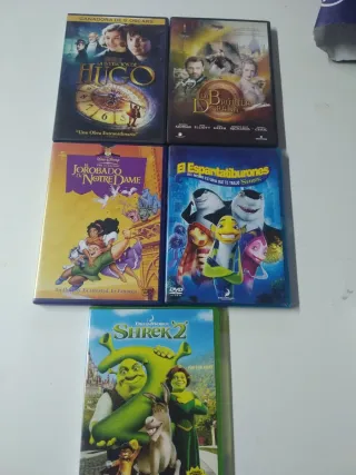 Colección de 10 DVDs de películas de animación. - La invención de Hugo - La Brújula Dorada - El Jorobado de Notre Dame - Espantatiburones - Shrek 2 - Las aventuras de Tadeo Jones - Ice age (La edad de hielo) Edición limitada - El príncipe de Egipto - Antz - La ruta hacia El Dorado ** Lote completo: 20 € ** Unidad suelta: 3 €