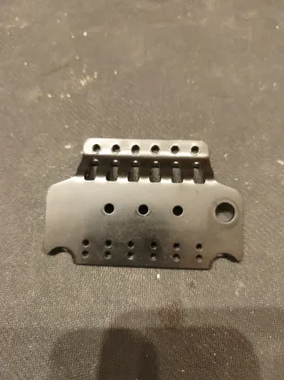 Placa de guitarra Floyd Rose en color negro. Repuesto. - Diseño metálico. - Grabado 'Licensed Under Floyd Rose Pats.'