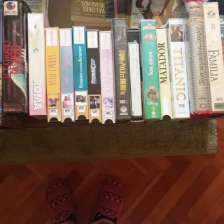 Lote de cintas VHS con títulos variados. - Incluye películas como Titanic, Los Osos, La Familia, El Arte del Masaje Sensual, Solo en Casa, Parques Naturales y más. - Formato VHS. - Idioma español.