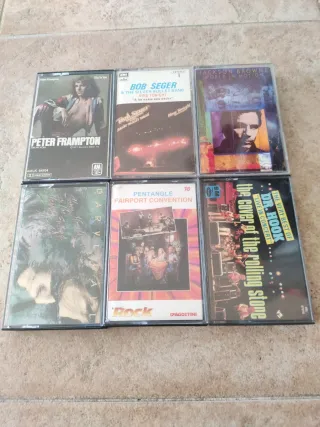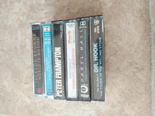 Lote de 6 cassettes de música. - Incluye World in Motion de Jackson Browne. - Incluye I'm in You de Peter Frampton. - Incluye Nine Tonight de Bob Seger & The Silver Bullet Band. - Incluye Fairport Convention de Pentangle. - Incluye The Very Best of Dr. Hook Live in Concert. - Incluye un cassette de Daryl Hall & John Oates.