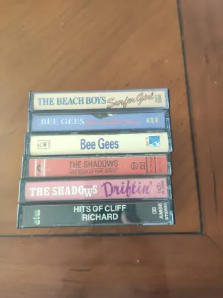 Lote de 6 cassettes de música variada. - 2 de Bee Gees. - 2 de The Shadows. - Beach Boys. - Cliff Richards