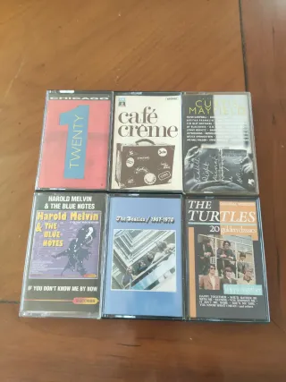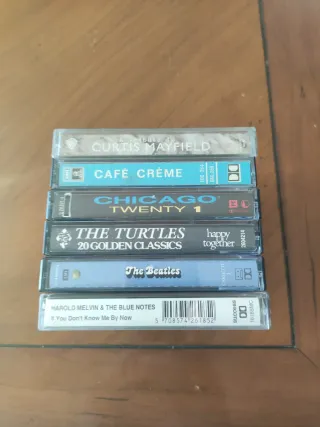 Lote de 6 cassettes de música variada. - Chicago - Twenty 1 - Café Crème - Tribute to Curtis Mayfield - Harold Melvin & The Blue Notes If You Don't Know Me By Now - The Beatles - 1967-1970 Vol.1 - The Turtles - 20 Golden Classics