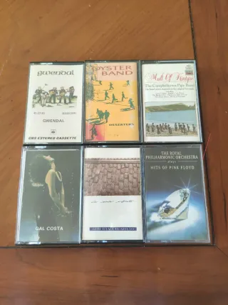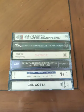 Lote de 6 cassettes de música variada. - Gwendal - Oyster Band - Deserters - Mull of Kintyre - The Campbeltown Pipe Band - Gal Costa - Lito Vitale Cuarteto - La senda infinita - The Royal Philharmonic Orchestra plays Hits of Pink Floyd