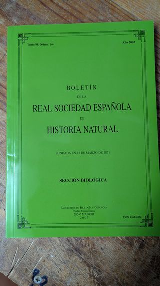 Colección del Boletín de la Real Sociedad Española de Historia Natural desde 2003 (Tomo 98 1-4) hasta 2021 (Tomo 115), incluyendo secciones Biológicas y Geológicas. El pack incluye las revistas Historia Natural desde el no 1 (oct-2003) al no 8 (mayo-2004), actas y varios monográficos.