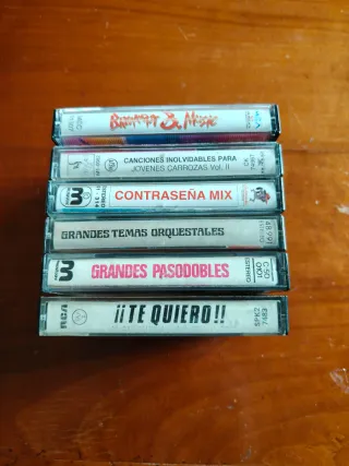 Lote de 6 cassettes con recopilaciones de éxitos musicales. Precio por todo el lote - Contraseña Mix - Canciones Inolvidables para Jóvenes Carrozas Vol. 2 - Breakfast & Music - ¡Te Quiero! Vol. 1 - Grandes Temas Orquestales - Grandes Pasodobles