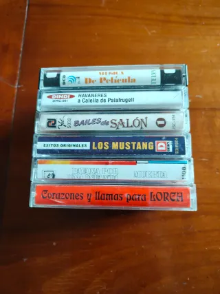 Lote de 6 cassettes de música variada. Precio por todo el lote - Bailes de Salón - Havaneres (con Els Pescadors de l'Escala) - Música de Película ( Telva) - Corazones y llamas para LORCA - Pavana por una Infanta Muerta - Los Mustang Exitos