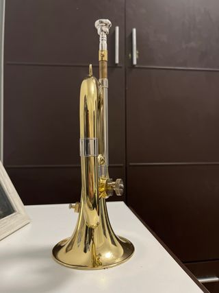 Corneta Amadeus ACT301 en acabado dorado, incluye funda con pañitos para su limpieza. - Diseño clásico y elegante. - Ideal para coleccionistas o músicos.