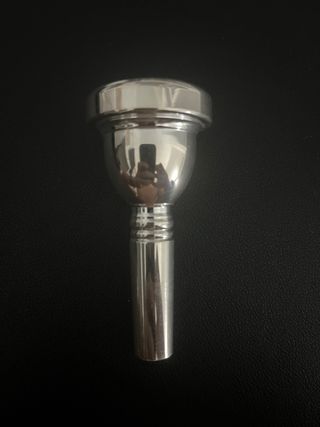 Boquilla de bombardino de metal plateado. - Diseño clásico y brillante. - Apta para bombardino. -Tudel Ancho -Muy poco uso -Medida entre una 4 o 5