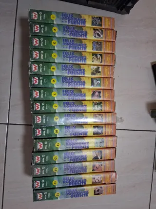 Colección de cintas VHS de la serie documental de Félix Rodríguez de la Fuente. Cada cinta cubre un tema específico de la naturaleza. Faltan el 12,15 y 16 - Títulos visibles: Los pequeños matadores, El macho montés, Las tablas de Daimiel, El águila real, El lobo social, Las cigüeñas, El jabalí, Los roedores, As rapaces nocturnas y diurnas, El alcadón, Los peñeros del bosque, El águila perdicera, El camachuelo, El lirón careto. - Formato VHS. - Idioma español.