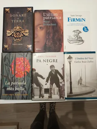L' ombra del Vent - Ruiz Zafón Et donaré la Terra - Chufo Llorens L' ultim Patriarca - Najat El Hachmi La paraula mes bella - Margaret Pa Negre - Emili Teixidor Firmin - Sam Savage
