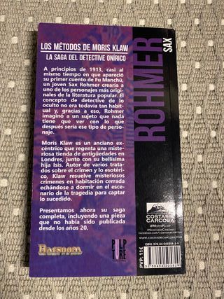 Libro Los métodos de Moris Klaw de Sax Rohmer Editorial Costas de Carcosa