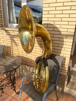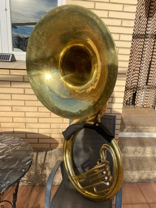 Sousafón Amati en Si bemol (helicon). Instrumento de viento metal con un sonido potente y característico de la marca. - Acabado en latón brillante. - 64,5 cm diámetro campana (22,4 pulgadas) - Marca Amati - Recién revisado por Lutier. - Tudel regulable en varias piezas. No dudes en preguntar para probarlo o saber algo más.
