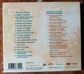 Edición especial de Andy & Lucas que incluye CD y DVD. - Edición original del año 2003. - Incluye libreto con las letras de las canciones. - Contiene 2 canciones nuevas y 2 nuevas versiones. - Incluye Premio Ondas Mejor Artista o Grupo Revelación Español. Colección rareza descatalogado Box set picture disc primera edición lp vinilo Cassette, tierra, barrio, vivir, ritmo, Diana Navarro, Rebujitos, Camela, Estopa, Caños, Rosalía.