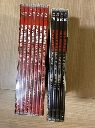 Se venden dos temporadas de la serie Mujeres Desesperadas en formato DVD, ambas precintadas. - Temporada 2: Una Edición con mucho jugo. - Temporada 5: La Quinta Temporada Completa. - Edición al rojo vivo.