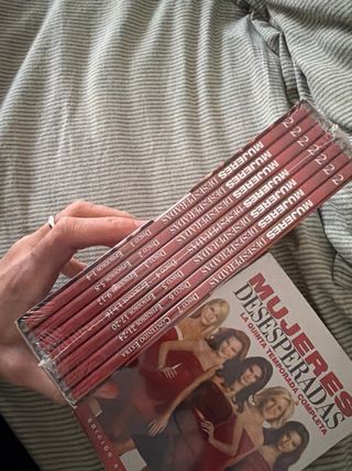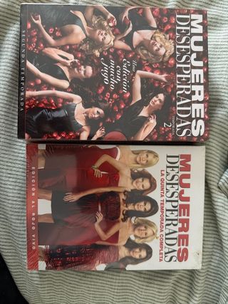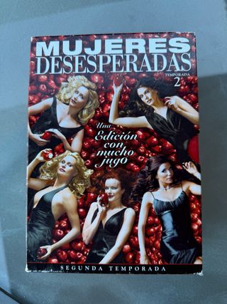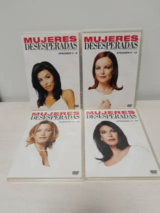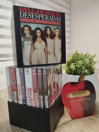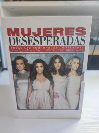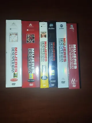 Colección de DVDs de la serie Mujeres Desesperadas. - Temporada 1 : Extras especiales - Temporada 2: Edición con mucho jugo - Temporada 3: Edición Trapos Sucios - Temporada 4: Edición Secretos Inconfesables - Temporada 5: Edición al Rojo Vivo