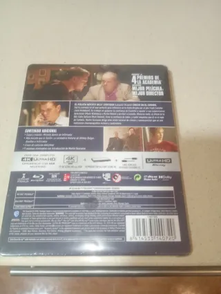 Edición metálica limitada de la película Infiltrados en formato Blu-ray 4K. - Incluye disco 4K Ultra HD y Blu-ray. - Película dirigida por Martin Scorsese. - Protagonizada por Leonardo DiCaprio, Matt Damon, Jack Nicholson y Mark Wahlberg.