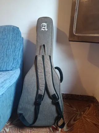 Funda para guitarra de la marca Alhambra. Es de color gris y tiene un bolsillo frontal con cremallera. - Material textil resistente. - Cierre de cremallera principal. - Asa de transporte. - Logo de Alhambra bordado.