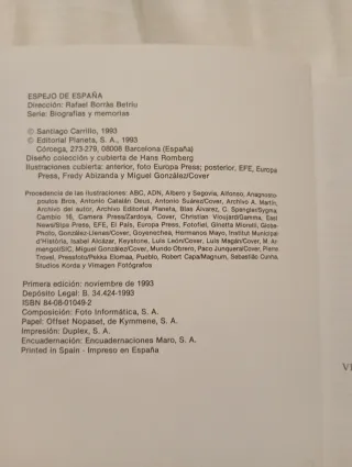 Libro: Santiago Carrillo. Memorias Espejo de España Editorial Planeta, Barcelona 1ª edición noviembre de 1993 Medidas 23X16 cm. 754 páginas
