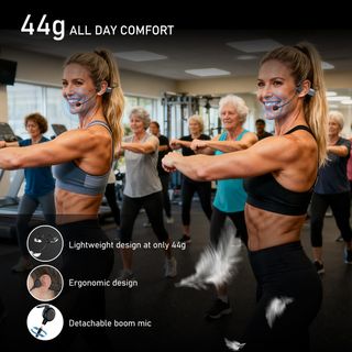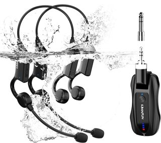 Set de micrófonos de diadema KMAFUN, diseñados para actividades. - Resistentes al agua IP67 - Diseño de diadema. - Micrófonos integrados. - Color negro.