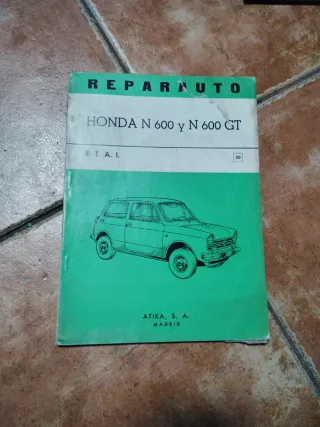 Manual de taller Reparauto Honda N 600 y N 600 GT. 57 páginas. Pequeños síntomas del mal almacenamiento en taller pero en buenas condiciones en general.