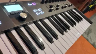 Controlador de teclado Arturia Keylab Essential 49. Diseñado para la producción musical. Muy poco uso, en su caja y con garantía aun. - 49 teclas sensibles a la velocidad. - Ruedas de pitch y modulación. - Botones retroiluminados. - Pantalla LCD.