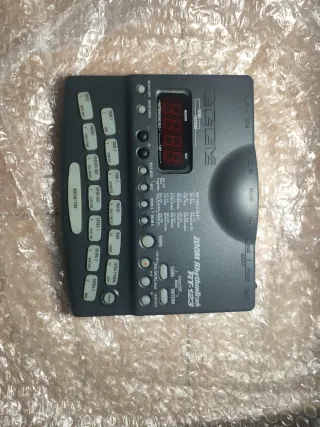 Caja de ritmos Zoom Rhythmtrak RT-123 en color gris. - Botones de KICK, SNARE, TOM 1, TOM 2, TOM 3. - Botones de CLOSED HAT, OPEN HAT, CRASH, RIDE. - Pantalla digital de 4 dígitos. - Conexiones DC IN, OUTPUT, PHONES. - Botones de REPEAT/STEP, TEMPO, SONG, PATTERN, MODE.